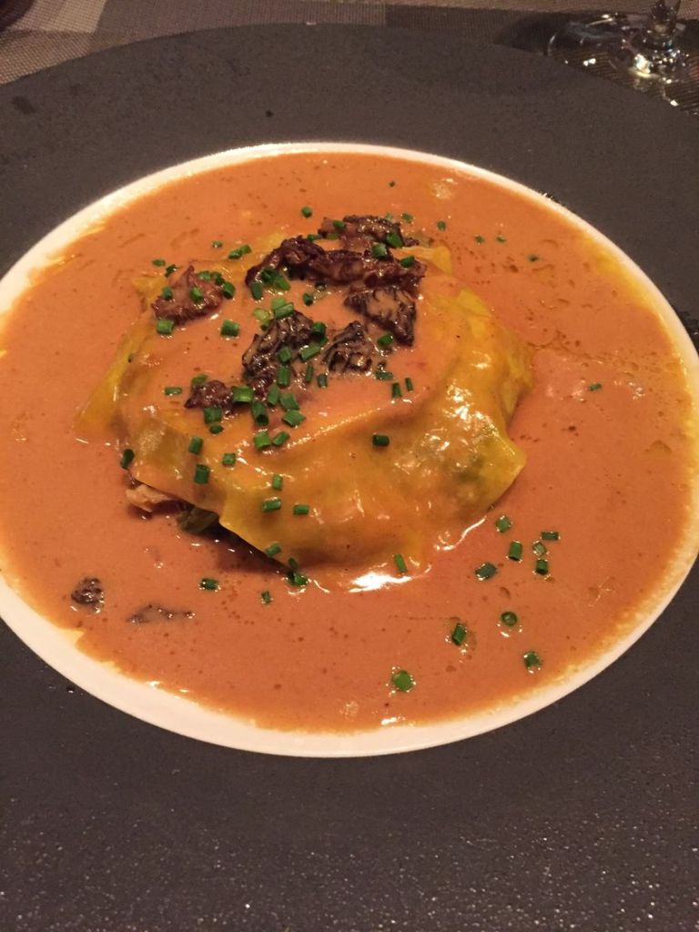 Don’t mind if I do. That followed by the ravioli de foie gras has my stomach on a good track. Suddenly a risotto, topped with lobster, appears in front of me. Confused, I tap the waitress.
